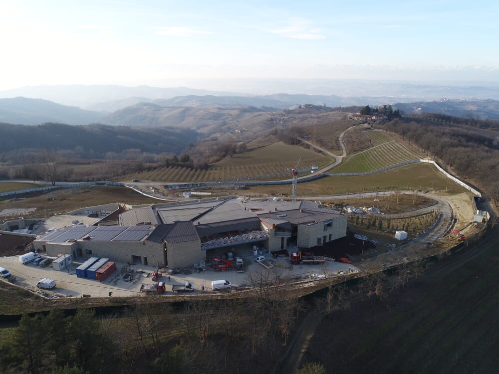 Il progetto prevede la realizzazione di una nuova cantina vinicola seminterrata in un contesto paesaggistico importante, quello dell'Alta Langa. Con una superficie di 12000 mq, la realizzazione ha previsto l'utilizzo di svariate tipologie e soluzioni strutturali, anche complesse. Notevole l'entità delle opere geotecniche realizzate con più ordini di palificate. L'intervento, realizzato con tempistiche molto rapide, ha coinvolto un team multidisciplinare.